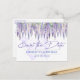 Vi presenterar vår förtjusande vattenfärgade, lilaska wistera-design, som visar den eekala skönheten hos lavender lila blommar, verdant grönt löv och en härlig pastellsiluett för lila butterfly silhouette. Denna fängslande utformning är ett val av perfekt för dem som planerar trädgårdsbröllop i vår, firande som kallas "whimsical Fairy" eller naturinspirerade djur. Lägg till en personlig tryckning genom att anpassa textrutorna med din egen Spara datuminformation, så att vykortet blir en unik återspegling av din artikel i kärlek. Den här utformningen är en del av vår sammanhängande samling som finns på www.zazzle.com/store/petalspalette. Backa på en resa för att skapa en verkligt minnesvärd och personlig bröllop-upplevelse med oss.