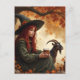 Witch and Pet Goat in Autumn Vykort