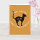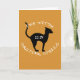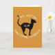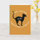 "Häxan finns i gjutna spådomar" i vit text som omger en svart katt på en texturerad orange.