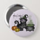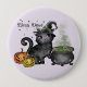 Den här söta designen har en söt svart katt som bär en häxhatt bredvid en kolonn och jack-o-lyktor med orden "Witch Vibes". Det är perfekt för en Halloween firande.