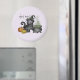Den här söta designen har en söt svart katt som bär en häxhatt bredvid en kolonn och jack-o-lyktor med orden "Witch Vibes". Det är perfekt för en Halloween firande.