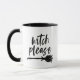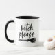 Det är roligt Halloween-kaffet mugg med frasen "Witch Snälla" i ett lekfullt, handskript med en häxas bom under. Halloween mugg är perfekt för att sippa kaffe, te eller hett kakao medan du tillsätter lite säsong humor till din dag. Gör en underbar gåva till vänner, medarbetare eller någon som kärlek en bra häxpun - roligt till använda för Halloween eller årsomgång.