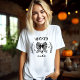Kvinnors Girly T-Shirt med Halloween-vibes i feminin coquette-utseende visade en söt svart snöre-buske, en häxsilhouette och finare-växten ram i svart och vitt. Anpassa texten enkelt. - Kate Eden Art.