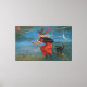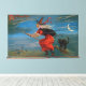 Witch Flies with Black Cat on Halloween Natt Canvastryck