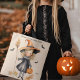 Gör Halloween minnesvärt med vår förtjusande häxtjej candy tote bags. Designade för tricksbehandling, de här påsarna är charmerande och praktiska för alla åldrar! Anpassa med det speciella namn och år för den speciella beröringen!