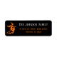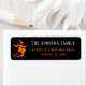 Anpassningsbar, personlig, chic, roligt, spooky, flygande häxa på orangen mellan svart och vitt, familjens namn-parters e-postreturadressetikett. Ange ditt namn/din familj namn/företaget namn och adress för att anpassa dig. Perfekt för både hem och företag, vuxnor och barn, personliga utskick och officiell. Underbara returetiketter för använda om utskick av skräpande pooky zombie hemsökt halloween Tema födelsedagsfest, kontor party, bröllop, babydusch med mera.