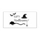 Desteis enkla Halloween-silhuettdesign med en häxhatt, en bom, två fladdermus och spindel tillsammans med texten: "Happy halloween!". Färgen på mönstret kan ändras om så önskas.