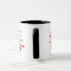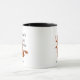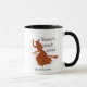 Personlig halloween mugg. Vektorillustration med grym silhouette av häxflygning på en bomme. Text "Magic potion" och "Drick inte". Lägg till ditt namn.