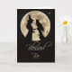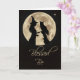 En häxa och uggla som är silhuetterad av en stor fullt måne med ord Bless. Ett magiskt Grattis på födelsedagen-kort.