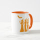 Featuring four stylish witches in orange silhouette holding drinks under a flying bat, this mug is perfect for witch squad gatherings, costume party pre-gaming, or cozy October nights in.