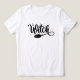 Den svarta och vita designen har ord "Witch" i ett fet, flytande skriptteckensnitt, där svan-änden av brev "h" omvandlas till en broompits handtag. Texten är stiliserad med ett lekfullt, handskrivet utseende, vilket ger en visuell beröring till det övergripande temat. Omkring ord är spridda stjärnor som skapar en magisk, stjärnnattseffekt som förstärker det häxaktiga temat. Bromskortet, som placeras diagonalt under texten, lägger till ett dynamiskt inslag i designen, vilket tyder på rörelse och djup.