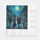 pappra napkins i halloween fest med en ai-konst som skildrar en häxa, vampyr, mamma och zombie som går genom Halloween-natten med en fullt i en coola tecknad bok stil.