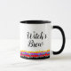 Tecknad häxa, svart katt och brom Witch Brew Coffee Mugg. Underbar för Halloween-favörer eller -gåvor.