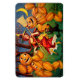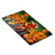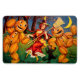 En lustig vintage, flexibel Halloween-magnet med en häxdans med pumpräntor och hennes katt.