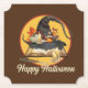 Halloween-temat papper underlägg illustrerar en dekorerad häxhatt på en bok med smälta ljus och trollspö, kan anpassadet "Happy halloween" lämnas som det är eller ändras med en personlig. Högre bruna bakgrund kan också ändras.