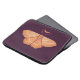 Witchy moth laptop sleeve i lila och gult med magisk häxaktig illustration av en gult nattetid med halv måne och stjärnor över mörkens lila.