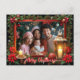 A heartwarming holiday postcard framed with festive poinsettias, holly, pinecones, and glowing candles. The center features a customizable photo slot—perfect for showcasing family joy—while elegant “Merry Christmas” script adds seasonal charm. Personalize with custom text on both front and back to share heartfelt messages, holiday wishes, or family updates. Ideal for spreading warmth and cheer with a personal touch