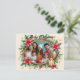 A joyful Christmas postcard featuring a customizable oval photo of loved ones framed by poinsettias, holly, candy canes, and a glowing lantern. Set against a warm beige backdrop with red bows and stars, this design radiates festive charm. All text—front and back—is fully customizable for sharing heartfelt holiday cheer.