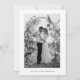 On the back of the invitation, a large, high-quality photo of the couple takes center stage, capturing a personal and memorable aspect of their relationship. Below the photo, at the bottom of the card, there is a designated area for additional information, such as a website address or any other relevant details. This extra line provides guests with a convenient way to access further information or updates about the wedding.