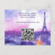 Flipping the card over, the same enchanting design continues, creating a seamless and visually captivating experience. A convenient QR code takes center stage, offering guests instant access to your wedding website for all the essential details. No need for lengthy URLs—just a simple scan and your guests are effortlessly connected. This card is more than an invitation; it’s a keepsake that captures the spirit of eternal love in the City of Lights, ensuring your guests’ journey to your celebration begins with grace, charm, and Parisian magic.
