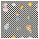 Wizard of Oz tecken på rutigt tyg för svart/för vit. Mönster inkluderar Dorothy, Toto, Tinmanen, fågelskrämman, fegt lejont, Glinda den bra häxan, regnbågen, molnet, ballongen och paraplyet.