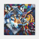 A vibrant colorful ai illustration of a wolf and an owl in a mosaic stained glass effect. A nice magnet for those who love wildlife.