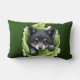 Wolf cub in the green: A view full of magic and warmth. A charming digital illustration features a wolf pup nestled within vibrant green lettuce leaves. The pup has black and grey fur, with a white muzzle and paws, and large, expressive green eyes. Rosy cheeks add to its endearing appearance. The background is a soft, gradient green, creating a gentle and inviting atmosphere.