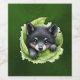 Wolf cub in the green: A view full of magic and warmth. A charming digital illustration features a wolf pup nestled within vibrant green lettuce leaves. The pup has black and grey fur, with a white muzzle and paws, and large, expressive green eyes. Rosy cheeks add to its endearing appearance. The background is a soft, gradient green, creating a gentle and inviting atmosphere.