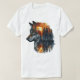 Wolf & Sunset Forest Dubbel Exponering T-Shirt. © Tees & Sweats på Zazzle. Den här tee har en varg dubbel exponering med en solnedgång skog på sig.