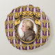 ZoeSPEAK:s ursprungliga teckning på denna runda Pillow har en porträtt i den klassiska musikkompositören Wolfgang Amadeus Mozart. Porträtt är en profiluppsättning i ett ornat ovalt golden ram. Ram hänger på en lila tapet-bakgrund med gyllene vinklingar i rader och lodrät vitt och lavender rand.