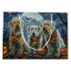 Släpp upp spookandan med den här eerie Halloween-designen med en hundar-förpackning under en mörk, månbelyst himmel, omgiven av flygande fladdermus och glödande pumpor. Perfekt för dem som kärlek en aning skrämmande roligt med sina hårigets vänner!