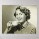 Kvinnlig anläggning i kopp, där man vistas i studio, (B&W), porträtt | George Marks | Tillgångs-ID: 57520620