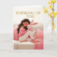 A cozy “Thinking of You” card featuring a serene illustration of a woman sitting on a couch, gently hugging a sweet bunny. Surrounded by soft pink pillows and a warm blanket, the scene captures a quiet, comforting moment of love and calm. Perfect for sending support, care, and a heartfelt reminder that someone is thinking of them.