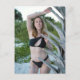 Woman In Black Bikini Posing On Sandy Beach Helg Vykort