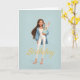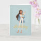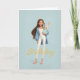 Woman in Blue & White w/ Cute Bunny Bday Kort