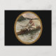 Det här vykortet har en fantastisk bild: en vintage vattenfärg av en kvinnlig skalare som roterar på ett mousserande sjö med segelbåtar i bakgrunden. Hennes kläder är vita och röda. Hon ser atletisk, garvad och seriös ut när hon griper på öronen och antar rätt roddform - trots att hon bär en fullt kjol!