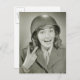 Woman Wearing an Army Helmet Vykort