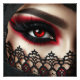 This captivating image features a woman with striking red eyes that draw immediate attention, enhanced by bold black makeup that accentuates her features. The vivid contrast between her dark makeup and the vibrant red iris creates a mesmerizing effect, making her gaze both alluring and intense. Perfect for those seeking to evoke a sense of mystery and drama, this image embodies a unique blend of beauty and edge.