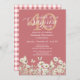 Celebrate in style with this elegant 40th Surprise Birthday Party Invitation, designed to keep the big day a secret until the very last moment. The design features the words “Shhh, it’s a Surprise” in a graceful script font, with “party” beneath and a shimmering golden “40” glowing softly in the background. A delicate border of watercolor white wildflowers and green leaves frames the bottom, all set against a soft red background for a refined, timeless look. The party details are displayed in a crisp white serif font, ensuring easy readability and sophistication. Perfect for family members, this invitation allows every detail—name, date, address, and RSVP—to be customized with ease.