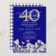 Celebrate in style with this elegant 40th Surprise Birthday Party Invitation, designed to keep the big day a secret until the very last moment. The design features the words “Shhh, it’s a Surprise” in a graceful script font, with “party” beneath and a shimmering golden “40” glowing softly in the background. A delicate border of watercolor white wildflowers and green leaves frames the bottom, all set against a blue background for a refined, timeless look. The party details are displayed in a crisp white serif font, ensuring easy readability and sophistication. Perfect for family members, this invitation allows every detail—name, date, address, and RSVP—to be customized with ease.