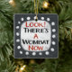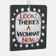 En oåterkallelig konstig typografisk djurdesign som säger "Titta! Det finns en kvinna nu." Den har svart och röd text på en vit rektangel med funky, lekfulla vita prickar runt den, allt på en grått-bakgrund.