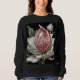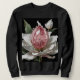 An imaginary flower composed of a large pink diamond surrounded by snow white petals covers this unique sweatshirt.