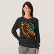 This women's slim-fit t-shirt is both stylish and comfortable. It comes in a variety of colors and sizes, with a semi-abstract butterfly's wing covering the front. This unique long sleeve t-shirt will add color and interest to your style!