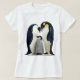 Women's t-shirt with a picture of an Emperor Penguin Family, a pair of Emperor Penguin parents with a chick on a white background. The Design is based on an original watercolour painting by Alan Skyrme.