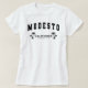 Modesto kvinnors T-Shirt visar att du är stolt över att vara från denna vackra stad. Den här T-Shirt-designen har "Modesto" i ett slabtypsteckensnitt med "Kalifornien" och "Golden State" i snyggt Title typsnitt med handflatan träd på vardera sidan.