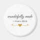 A minimalist Christian magnet featuring the Bible verse “wonderfully made” from Psalm 139:14 with a delicate gold heart detail.