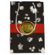 Medium-glansig presentväska med en bild av en svart och vit Alice i Wonderland-konstruktionen som är omsluten med ett valfritt rött satin-band som är accentuerat med en tekanna som är präglad på guld vax. Se matchning av stor presentväska, kontur, favör-box, hjärtformad favärde-tagg och papper radbrytning. Se hela Wonderland Gift Bag-samlingen i SPECIELLA TUUCHES | Avsnittet Party favors.