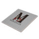 Den vita keramiska plattan har karaktären vintage Alice och färg drottning av hearts med stora brev/inledande M med svarta/guld/röda kort fyller mönster på en grått harlequin-bakgrund i vintage. Anpassa ytterligare med anpassade namn