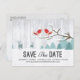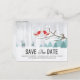Elegant Snö Scene Wonderland med Red Cardinal Bird and Reindeer Winter Wedding Spara datum / OSA Postcard. En Perfekt för din stora dag. Alla textstorlekar stil, färg, kan ändras för att passa dina behov.