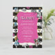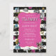 Alice i Wonderland gav temat Tea Party Un Birthday-inbjudan med Mad Hatter, Cheshire Cat, Alice och kaninen. Anpassa texten till din egen speciella dag. Visar här i shock rosa med svart och vitt rand.Den här utformningen finns i andra färger och bakgrunder.